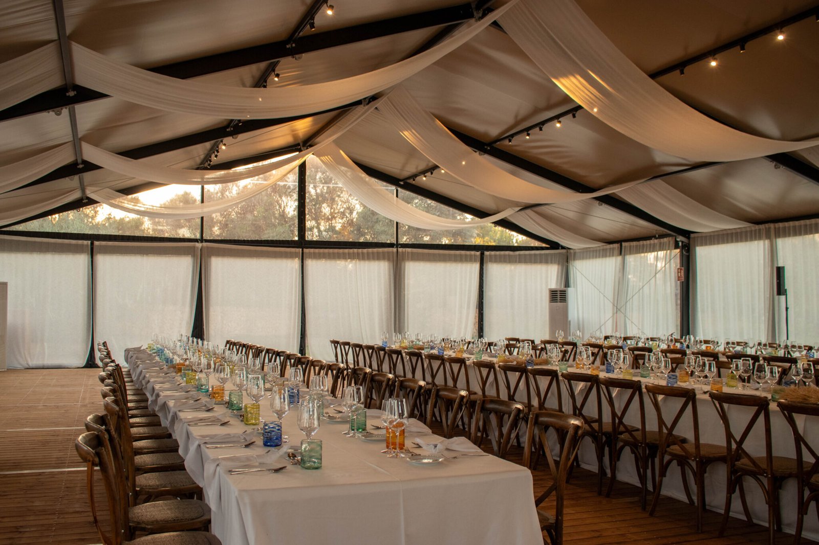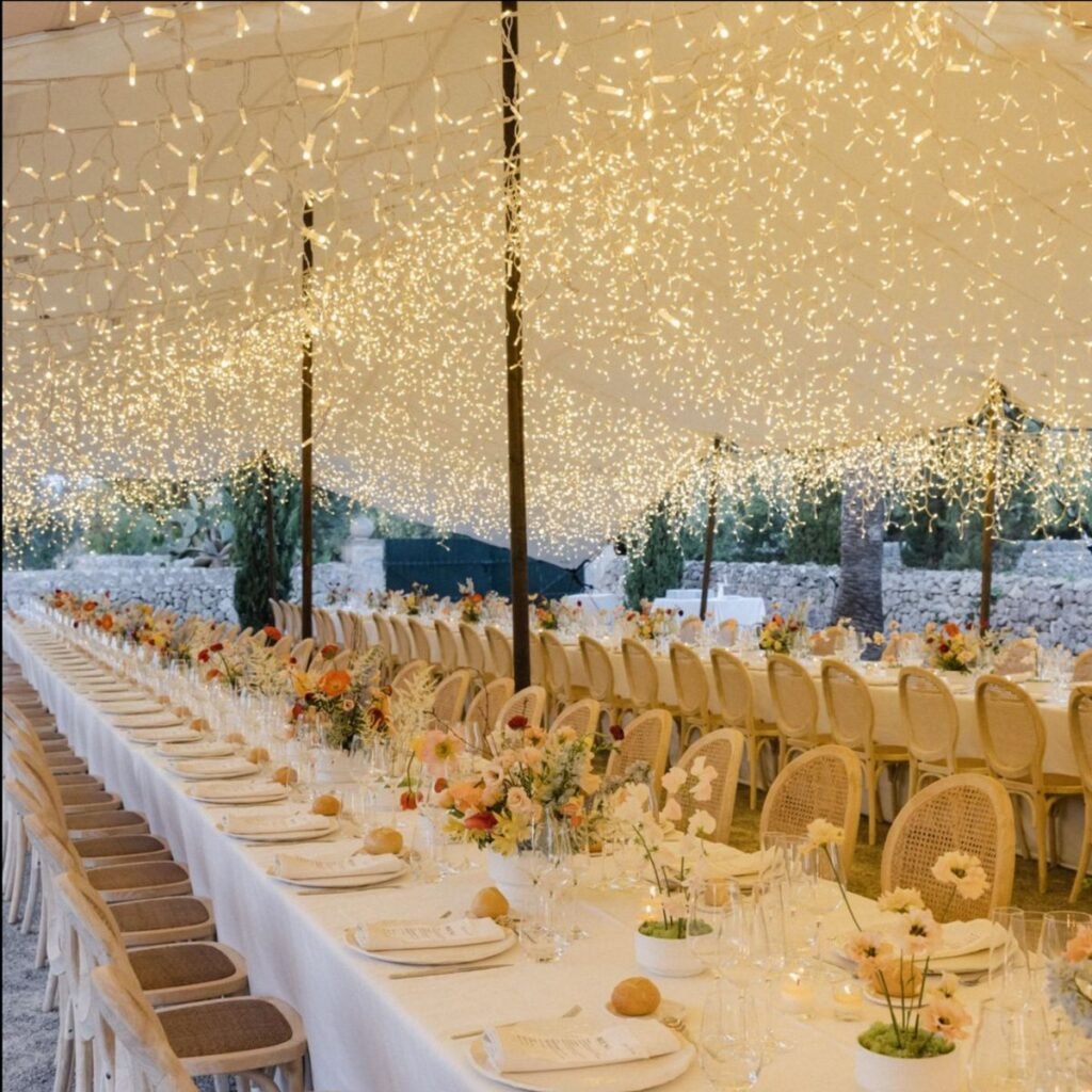 Nuestras carpas beduinas ofrecen una estética fluida y sofisticada que se adapta a cualquier entorno. Su diseño versátil permite crear desde ambientes íntimos hasta grandes espacios abiertos, aportando flexibilidad para eventos de cualquier tamaño. Tienen un estilo único y añaden un toque elegante y acogedor, sea cual sea la ocasión. Descubre diferentes tipos de iluminación aquí.