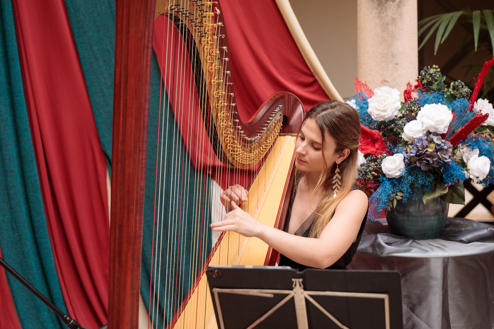Arpista profesional con sólida formación y amplia experiencia artística. Graduada en los conservatorios de Mallorca y Madrid, ha participado como intérprete junto a destacadas orquestas, consolidando una trayectoria de excelencia. Su repertorio, tan versátil como refinado, va desde obras clásicas hasta versiones de bandas sonoras y temas icónicos de los años 80, 90 y 2000. Gracias a su habilidad para fusionar estilos, cada presentación se convierte en una experiencia única, cargada de elegancia y emoción.